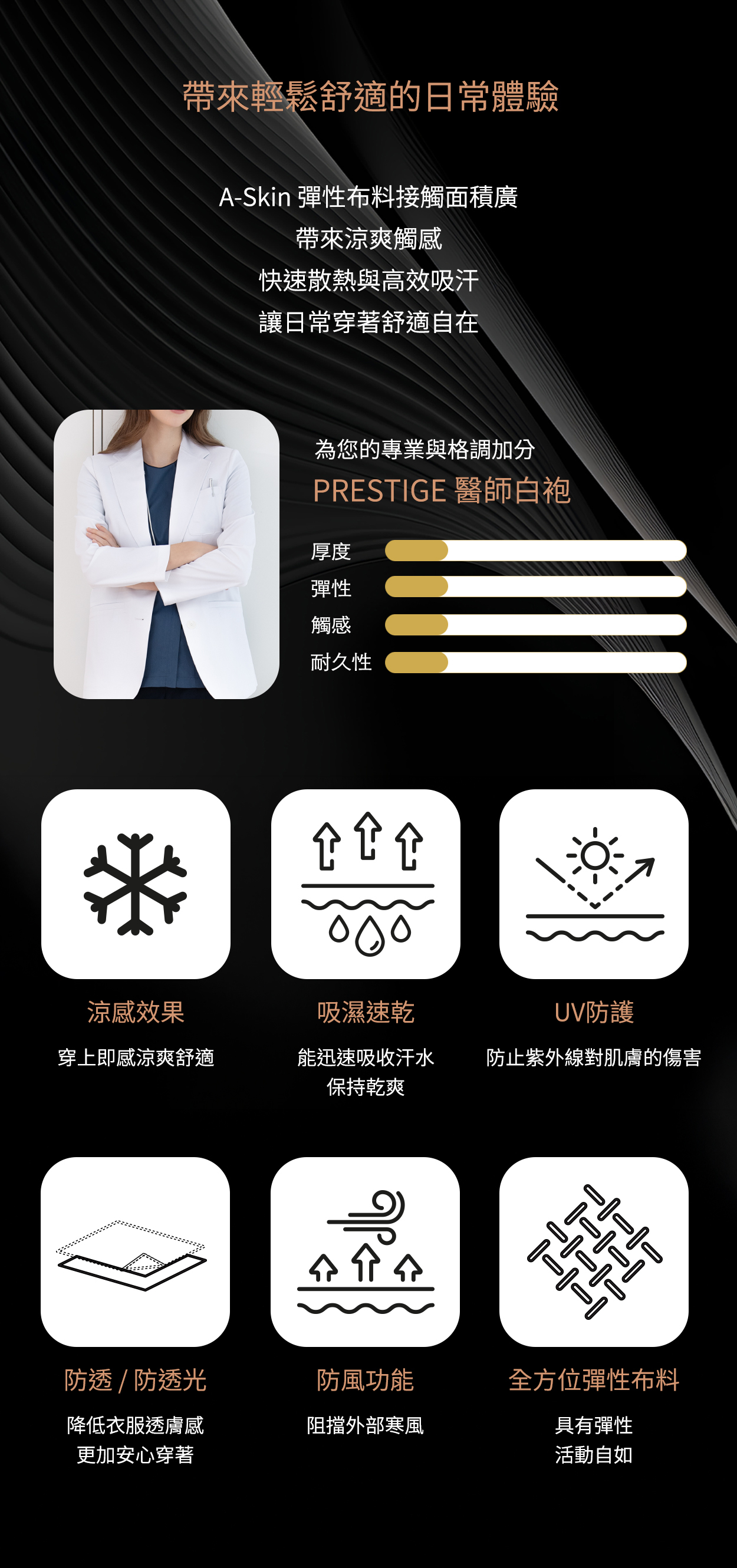 •Askin 吸濕涼感彈性布料